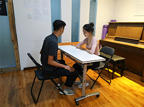 放聲訓(xùn)練、臺(tái)詞有效內(nèi)容的傳達(dá)、行進(jìn)動(dòng)作中的語言訓(xùn)練;